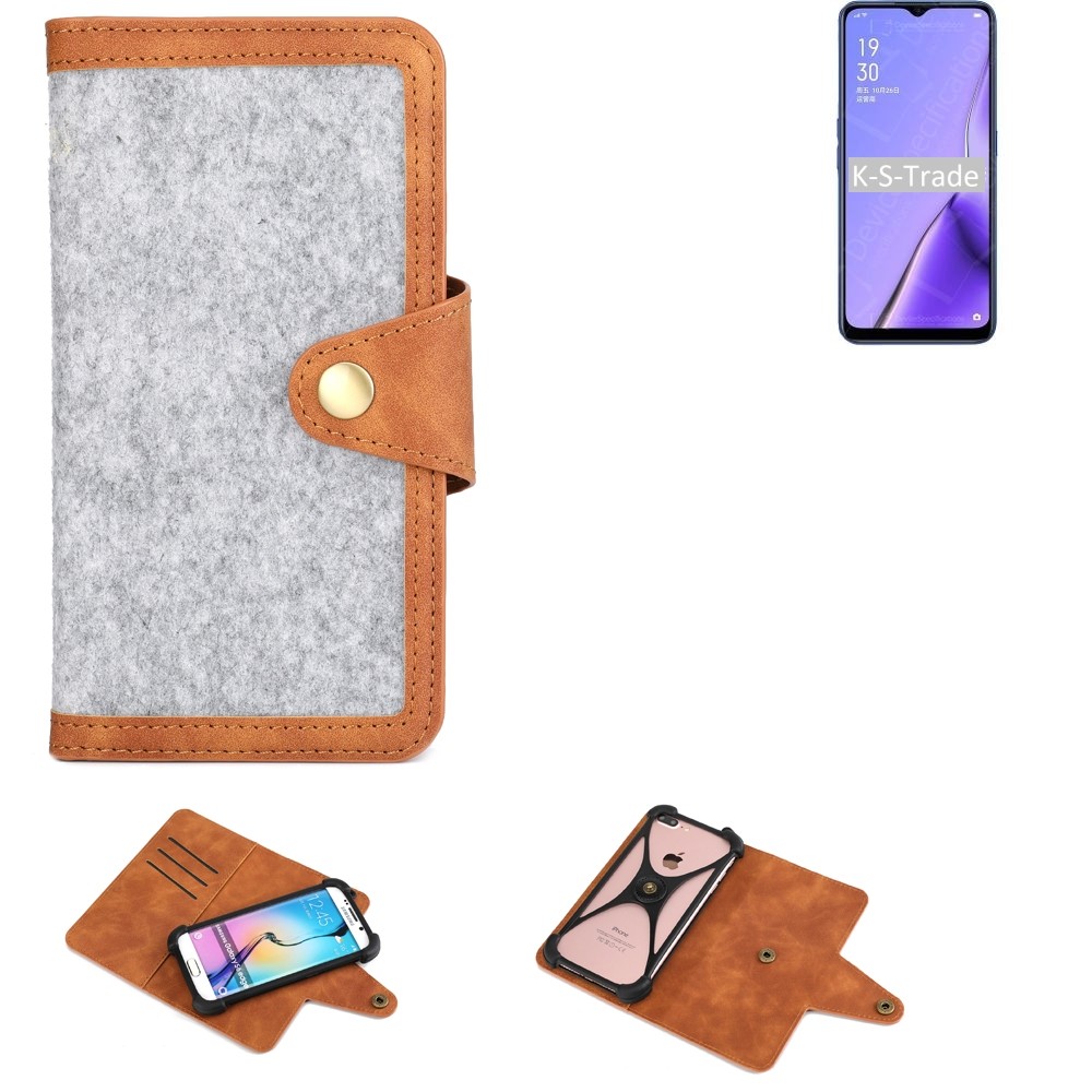 K-S-Trade Handyhülle kompatibel mit Oppo A11x Schutzhülle Filz-Hülle Kunst-Leder hellgrau braun (1x). Material: Die Handyhülle für Smartphones ist aus Filz gefertigt und ist innen mit Kunstleder verstärkt.