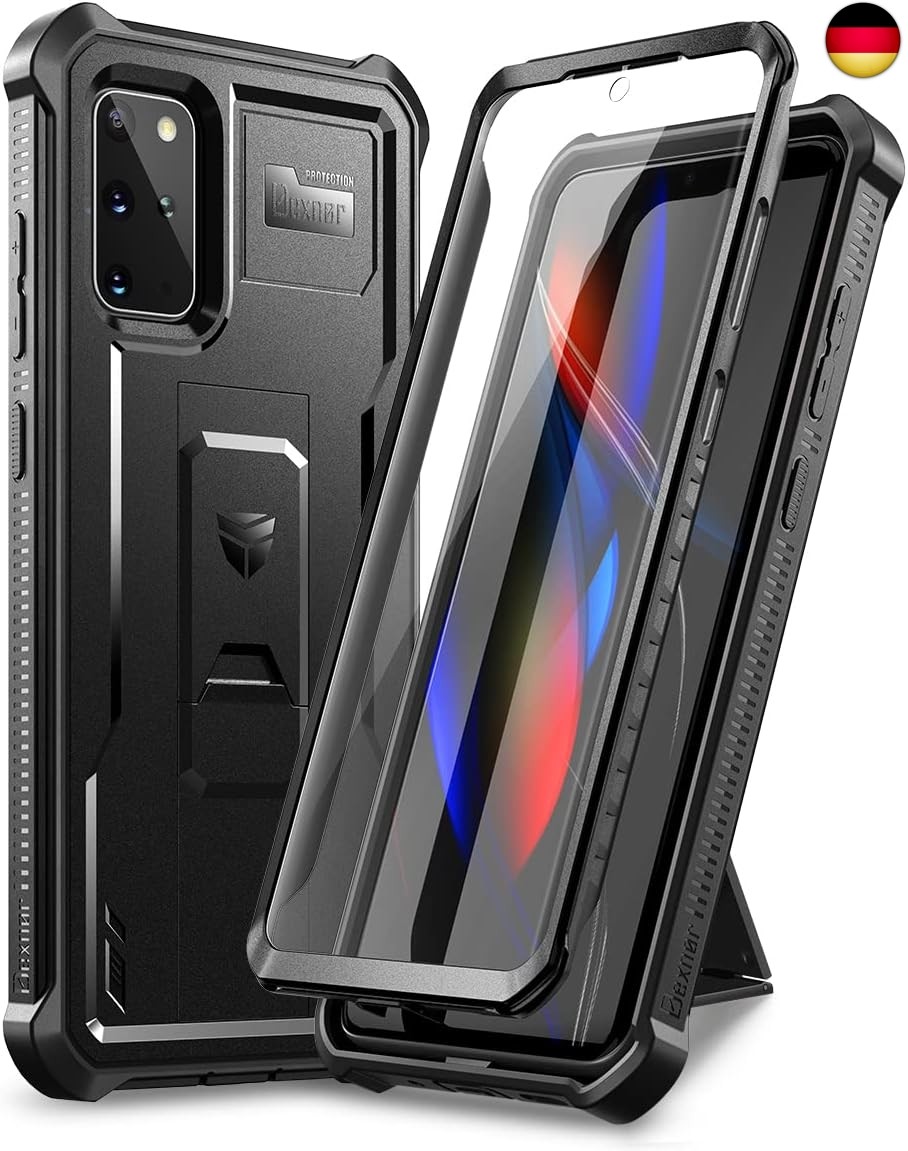 Dexnor Kompatibel mit Hülle Samsung Galaxy S20+ Plus 5G, eingebauter Displayschutz und Ständer, strapazierfähig, Militärqualität, stoßfest, Schutzhülle Kompatibel mit Samsung Galaxy S20 Plus, Schwarz.