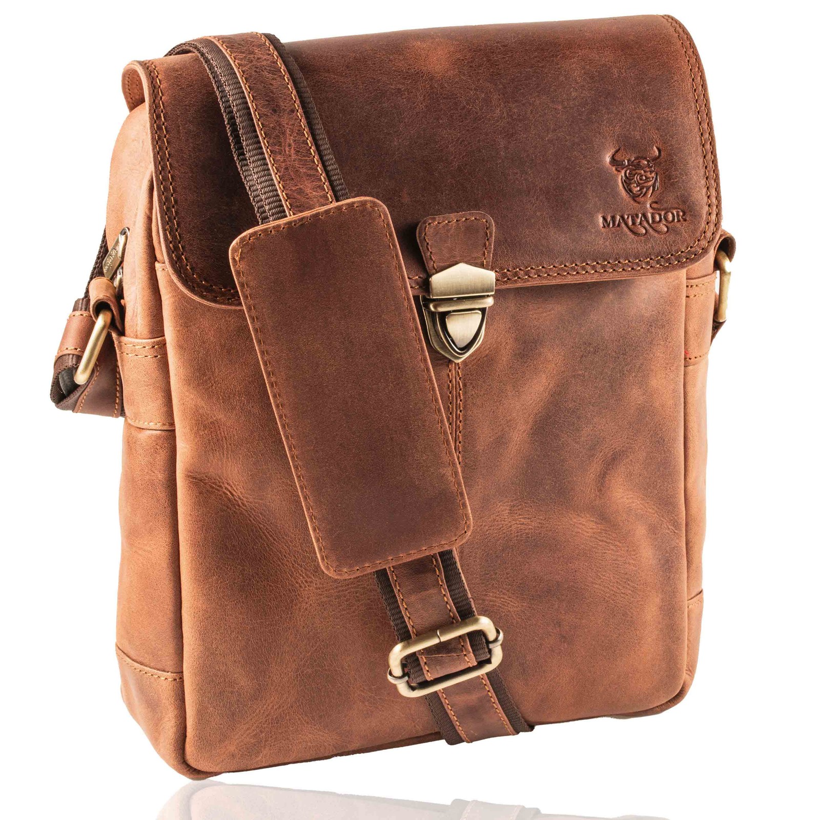 MATADOR ECHT Leder Umhängetasche Schultertasche Herren / Damen Messenger Braun
