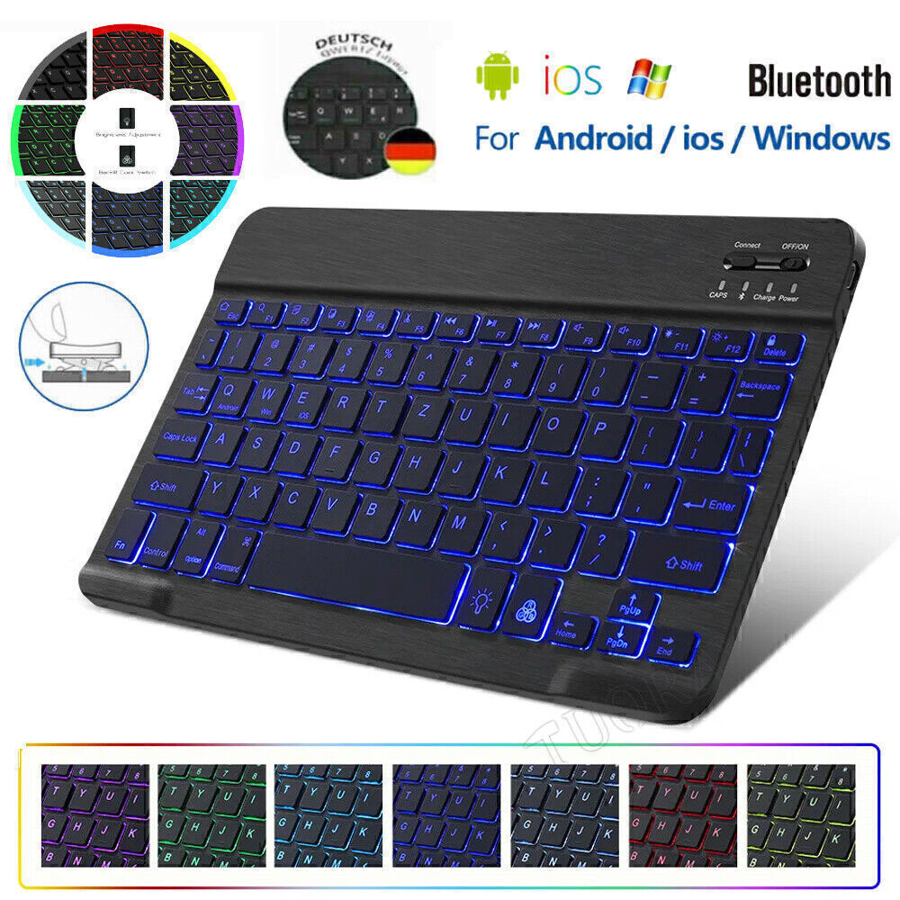 QWERTZ 7 Farbe Tastatur. Beleuchtete QWERTZ Tastatur mit Hülle für iPad A16 11/10/9/8th Air M4 M3 Pro 11". Beleuchtete Tastatur Hülle Maus für Samsung Galaxy Tab S10 Lite S9 FE A11+ A9+. Hülle mit Beleuchtete Touchpad Tastatur für iPad 7/8/9/10/11.
