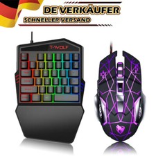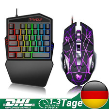 EINHAND-TASTATUR & GAMING-MOUSE SET 35 TASTEN 3200 DPI LED BELEUCHTUNG. Dieses Set kombiniert eine kompakte 35-Tasten-Einhandtastatur mit einer präzisen 6-Tasten-Gaming-Maus. Der optische Sensor bietet 4 wählbare DPI-Stufen (800-3200) für blitzschnelle Reaktionen.