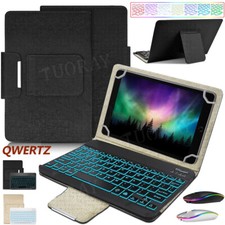 Bluetooth-Tastatur (QWERTZ) mit Beleuchtet. Abnehmbare Touchpad-Tastatur und Vollschutzabdeckung. 1 x USB-Ladekabel. Leder Hülle. -Material: PU-Leder. Bluetooth 5.0 Wiederaufladbare Maus Eigenschaften:(Das ios-System muss auf Version 13.2 oder höher aktualisiert werden). ).