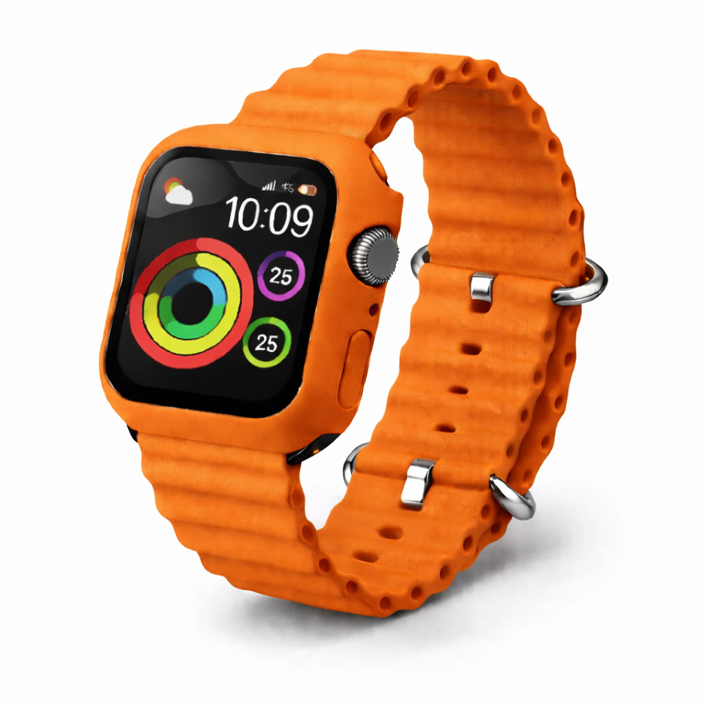 Du erhältst einperfekt abgestimmtes Set aus Silikon Ocean Armband und Schutzcase in derselben Farbe. Ideal für einen modernen und einheitlichen Look deiner Apple Watch. Wähle aus14 stilvollen Farben deinen persönlichen Favoriten und passe deine Apple Watch deinem Stil an - Auf BILD 2 alle auf Farben auf einem Bild.