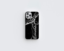 Personalised Black Marble and Peach Phone Case Designs. Printed Marble and Peach with Glitter effect Personalisation. NOTE: Not real glitter or marble but beautifully printed onto our high quality shock resistant cases.
