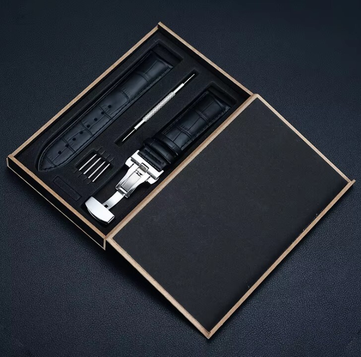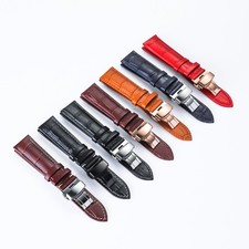 Universal Echtleder Uhrenarmband mit Butterfly-Faltschließe. Unser Uhrenarmband ist in den gängigen Breiten16 mm, 18 mm, 20 mm und 22 mm sowie in den klassischen FarbenSchwarz und Braun erhältlich. Die integrierteEdelstahl Butterfly-Faltschließe mit Druckknopf sorgt für einen sicheren und eleganten Verschluss, der sich nahtlos in das Design einfügt.