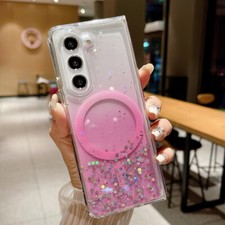 Klar Glitzer MagSafe SchutzHülle Magnet Stand Case Handy Tasche Harte Rückseite