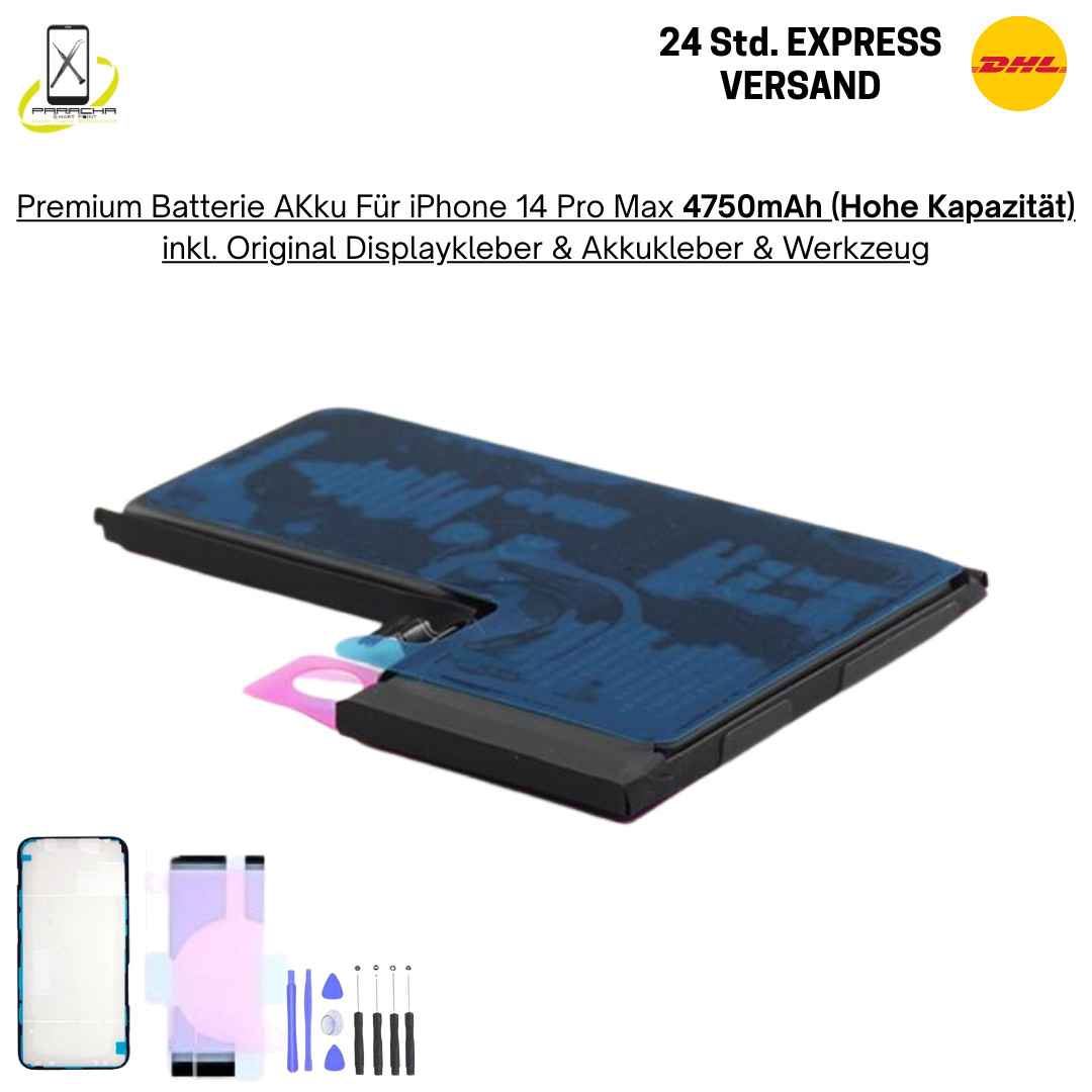IPhone 14 Pro Max Akku Hohe Kapazität 4770mAh. 1x iPhone 14 Pro Max Akku High Capacity 4770mAh + Original Kleber. 100% Batterie Kapazität - Hohe Kapazität. Die Akkus wurden nie benutzt und haben keine Gebrauchspuren, sie sind komplett NEU!