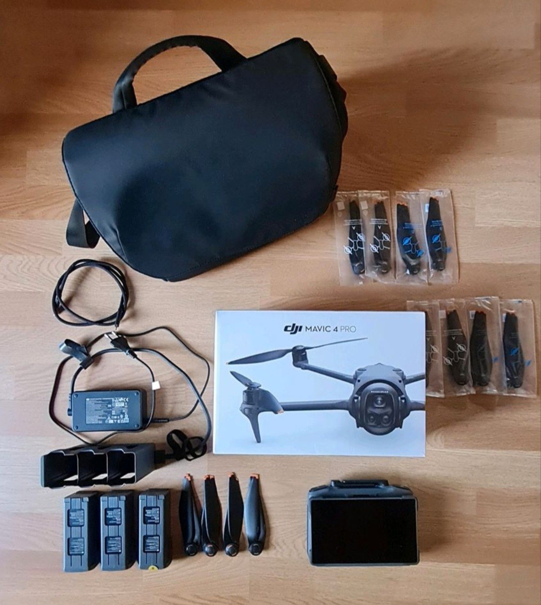 DJI Mavic 4 Pro 512GB (neu!!) und Creator Combo mit RC Pro 2 Fernbedienung. Das Set ist praktisch neuwertig und enthält: • DJI Mavic 4 Pro Drohne (neu, ungeflogen, ungeöffneter Originalkarton) • RC Pro 2 Fernbedienung mit Display • 3 Akkus (einer mit 2-3 Ladezyklen, zwei unbenutzt) • 3 Propeller-Sets • Ladegerät und Kabel • USB Kabel • Hochwertige Tragetasche Die Drohne selbst ist absolut unbenutzt und befindet sich in der original verschweißten Verpackung, die mir im November 2025 von DJI geschickt wurde. Nur eine Batterie und die Fernbedienung wurden mit einer anderen Mavic ro 4 minimal getestet. Bei Fragen gerne melden Privatverkauf, daher keine Rücknahme