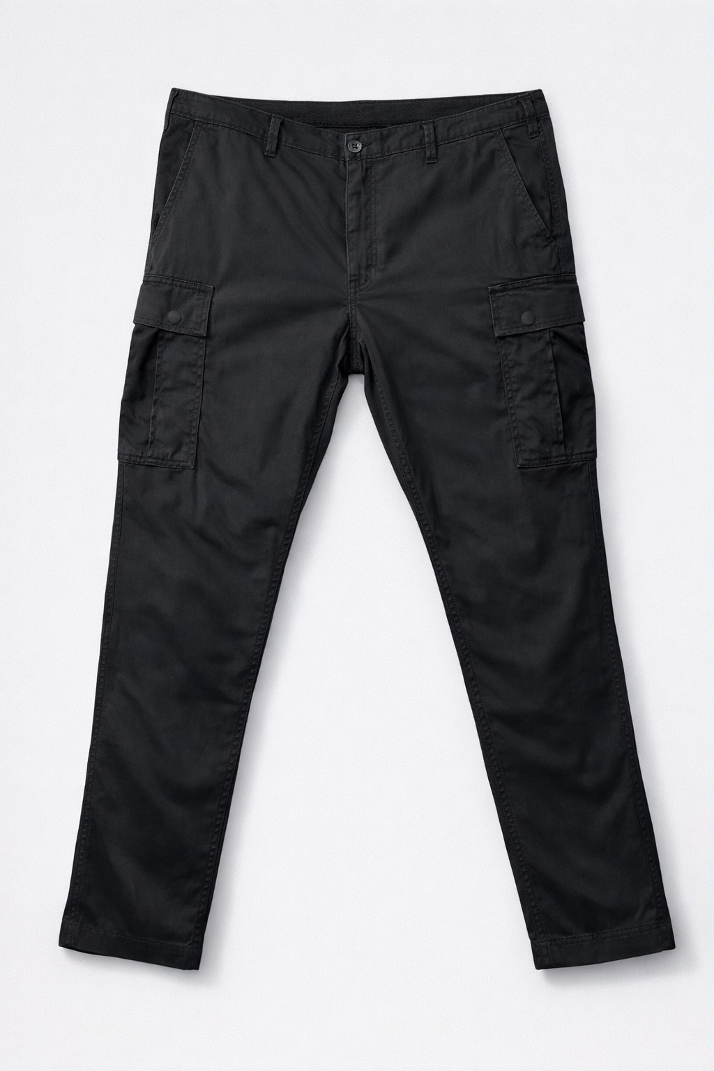 Polo Ralph Lauren slim fit military cargo trousers in deep black. Material composition label has faded but trousers remain in very good condition and retain a strong deep black tone throughout. No visible flaws.