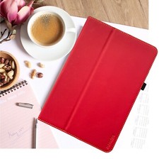 Sind vorhanden. Tablet Schutzhülle Case Tasche rot. Material: Leder. Hochwertiger Schutz für Vorder- und Rückseite.