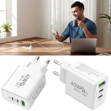 3-fach Schnellladegerät 40W Netzteil 2x USB-C + 1x USB Charger Mehrfach Stecker