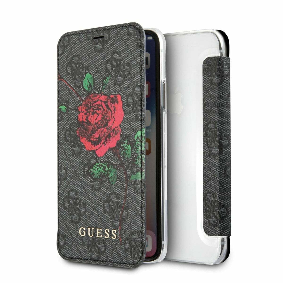 Guess iPhone Xs / X Tasche Book Case Cover Flower Desire Grau