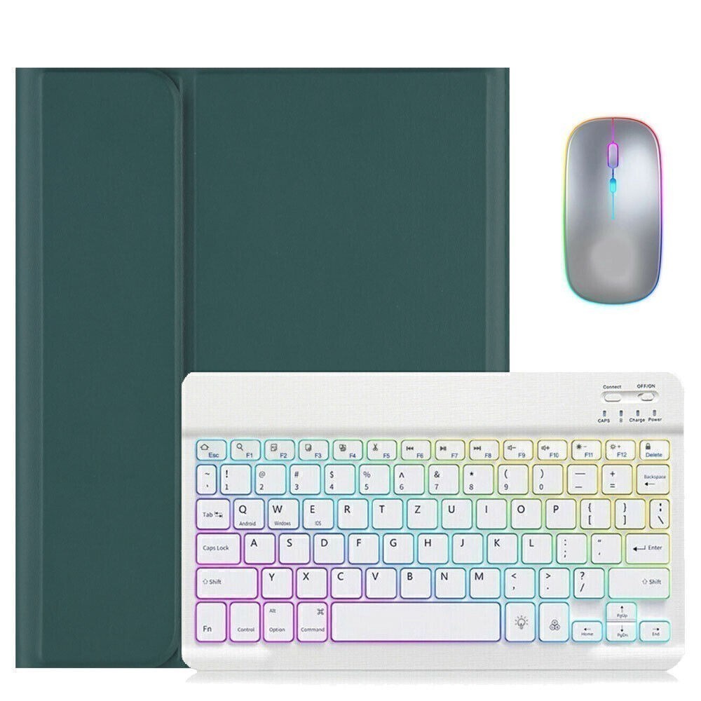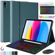 Bluetooth-Tastatur (QWERTZ) mit Beleuchtet. 1 x Beleuchtete-Bluetooth-Tastatur. 1 x Beleuchtete Tastatur. 1 x USB-Ladekabel. Leder Hülle. -Funktion: Ständer und Portektor. -Material: PU-Leder. Bluetooth 5.0 Wiederaufladbare Maus Eigenschaften:(Das ios-System muss auf Version 13.2 oder höher aktualisiert werden). ).