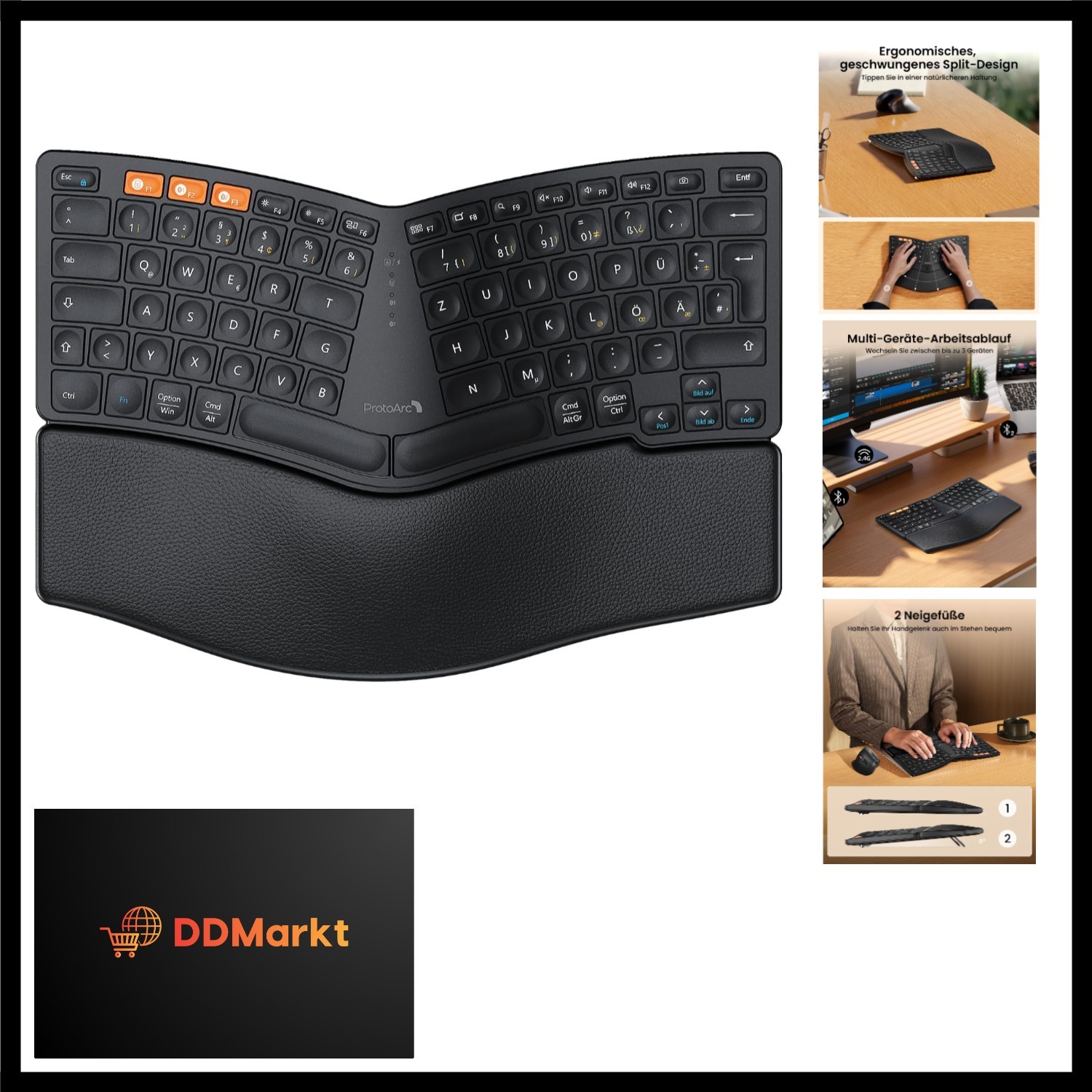 Bluetooth Ergonomische Tastatur, EK04 Mini Kabellose Ergo Tastatur Kompakte mit Handballenauflage, Geteiltes Design, Natürliches Tippgefühl, Bluetooth & USB, Wiederaufladbar, für Windows/Mac. Der automatische Schlafmodus spart Energie, wenn 30 Minuten lang keine Eingabe erfolgt.