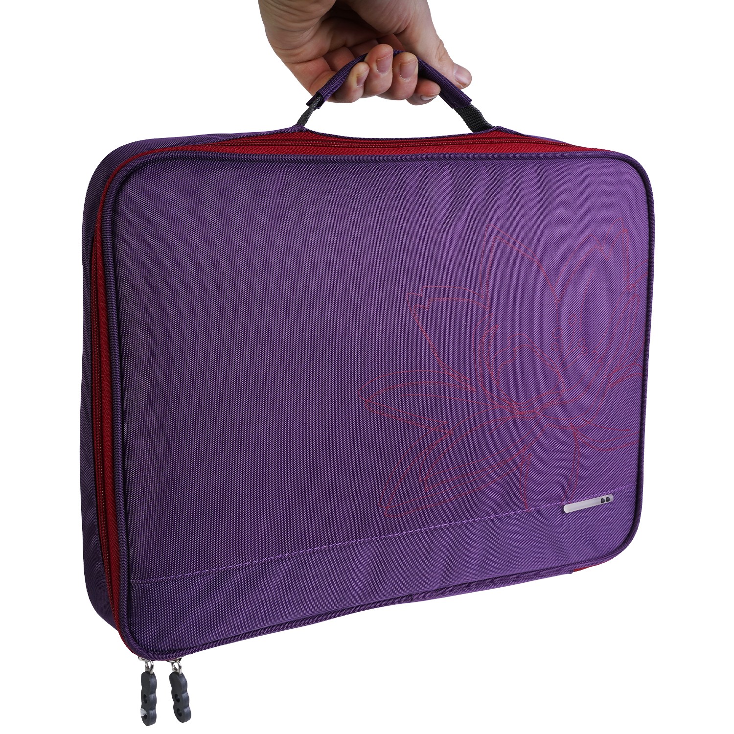 Gepolstertes Sleeve schützt das Notebook vor Stößen Weiches Innenmaterial schützt das Notebook vor Kratzern Gepolsterter Griff Ausführung: Cover Farbe: Pflaume mit Verzierungen Material: Polyester Notebookfach Innenmaß (BxHxT): 33 cm x 24 cm x 3,5 cm Für Notebook-Größe: 13" bis 14" (Innenmaße beachten).