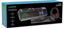 Tastatur mit Vollformat-Tastenfeld im DE Layout sowie hervorgehobenen WASD-Tasten. Vierteiliges Gaming Set bestehend aus Tastatur, Headset, Maus und Mauspad. Ich verkaufe ein Speedlink LUNERA 4in1 Illuminated Gaming Set – vierteiliges Set, mit Beleuchtung, schwarz, DE Layout.