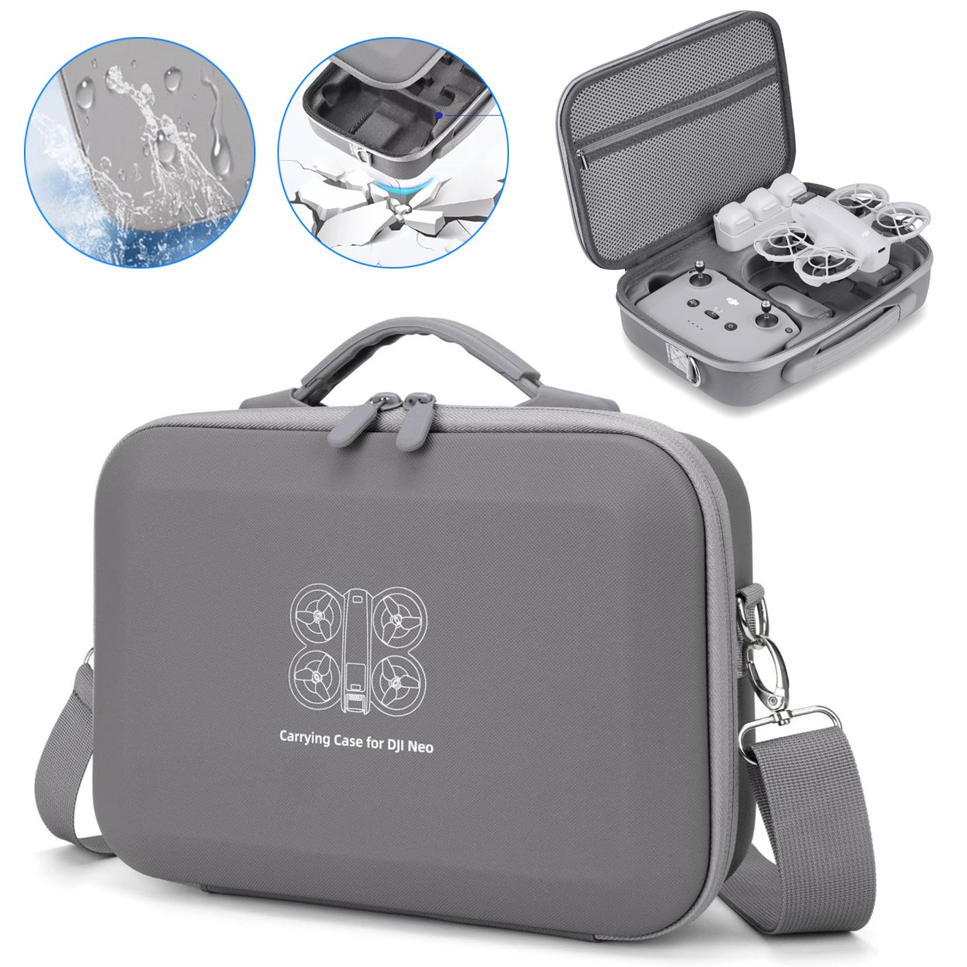 Info zu diesem Artikel【Drohne Zubehör Tasche】 Tragetasch für Neo accessories fly more combo und intelligent flight battery oder propeller schutz charger kabel【Schutz Design】 Wasserdichtes tragetasch besteht aus PU material zum schutz vor kollisionen kratzern und anderen beschädigungen für DJI Neo Drohne【Leicht zu Tragen】 Klein und leicht, Ausgestattet mit griffen und rutschfesten schultergurten, Kann in einen rucksack gesteckt werden und ist für reisen im freien geeignet【Über Drohnenpakete】 28 x 9 x 19,5 cm, Die größe jedes innenraums ist individuell für Neo drohnenzubehör angepasst【Verpackungsliste】 Neo drohnen tragetasche*1, schultergurt*1 (drohne und anderes zubehör sind nic.