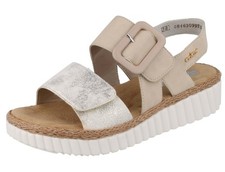 Die ideale Passform wird durch einen praktischen, zweifachen Klettverschluss gewährleistet, der einen mühelosen Einstieg ermöglicht. Stylisch und komfortabel – die beigen Rieker Keilsandaletten 69260-60 vereinen beides auf perfekte Weise.