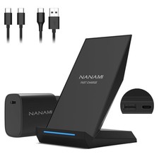1 x 1 m Typ-C-Ladekabel. 1 x Schnelles kabelloses Ladepad. Schließen Sie die Ladestation an und legen Sie Ihre Smartphone/Handy einfach darauf. Lade effizienz: > 75 %. Lade frequenz: 110 – 205 KHz. - versehen mit einem Typ-C-Anschluss (der heutige Standard).