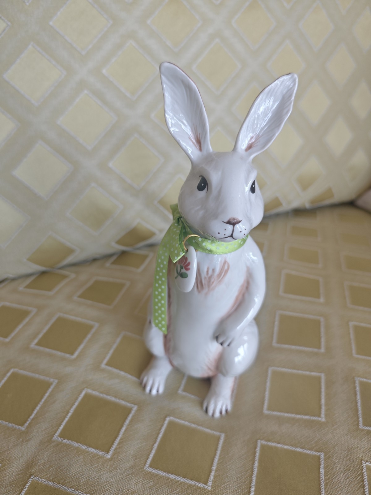 Verleihen Sie Ihrem Zuhause mit der exquisiten Villeroy & Boch Porzellanfigur eines Hasen eine festliche Note. Diese charmante Dekoration, perfekt für das Osterfest, misst 23 cm in der Höhe und 9 cm in der Breite und besticht durch ihr glänzendes Finish, das jedem Raum einen Hauch von Eleganz verleiht. Mit ihren lebendigen, mehrfarbigen Farbtönen und einer detailreichen Gestaltung ist diese Figur ein echter Blickfang. Sie ist aus hochwertigem Porzellan gefertigt und lässt sich einfach mit einem feuchten Tuch reinigen, sodass sie Jahr für Jahr zum Osterfest geschmückt werden kann, ohne dass zusätzliche Teile benötigt werden. Sammlerstück,Top, Zustand,stand in der Vitrine. Auf Wunsch ist noch ein 2 Hase zu verkaufen. Ohne sichtbare Schäden,Ohne Gewährleistung und Rücknahme