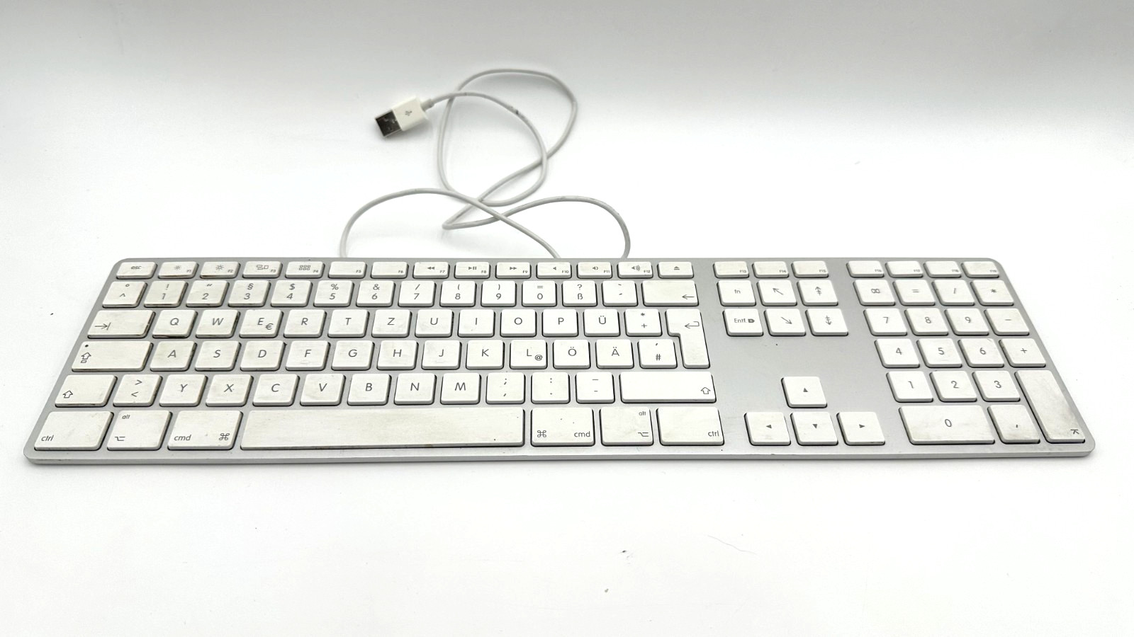 ✔Modell: Apple Keyboard A1243. Apple Keyboard A1243 (USB, Aluminium). ✔Reinigung: Gereinigt. ✔Technisch: Tastatur wird vom PC erkannt, jedoch funktionieren einige Tasten nicht. ✔Anschluss: USB. ✔Zustand: Defekt – einige Tasten reagieren nicht.