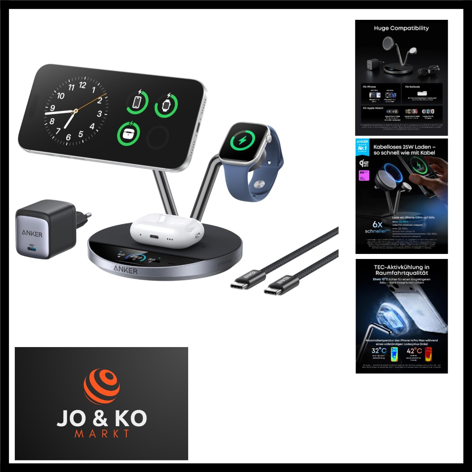 Prime MagSafe-kompatibles 3-in-1 Ladegerät, Qi2 25W kabellose Ladestation mi...