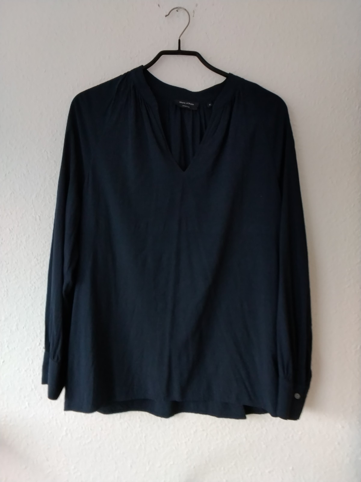 Verleihen Sie Ihrem Kleiderschrank mit diesem toller Bluse, lange Bluse, leichter. Farbe - dunkelblau. Material - 97% Viskose, Elasthan. Marke - Marc O'Polo.