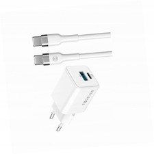 GaN 20W PD QC Netzteil mit 1m USB-C Kabel, 2 Anschlüsse (USB-C & USB-A) in Weiß. Ausgestattet mit einem USB-C Port ist das Ladegerät äußerst vielseitig und kompatibel mit einer breiten Palette von Geräten.