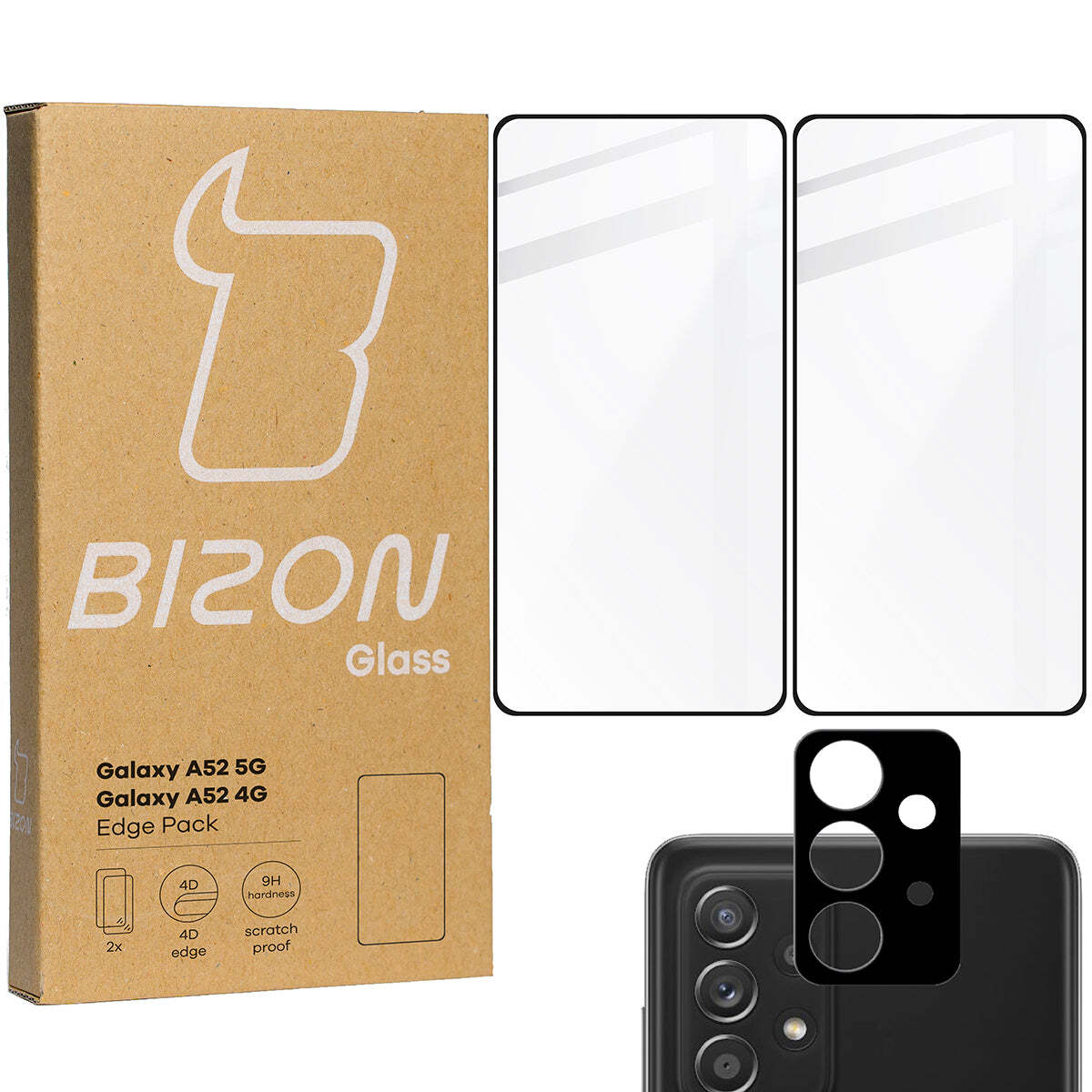 2x Gehärtet Glas + Kameraglas für Galaxy A52s 5G, A52 4G/5G Bizon Hartglas Glas