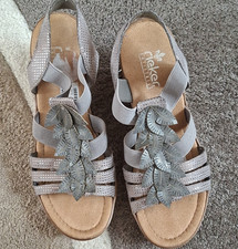 RIEKER-Sandale aus Lederimitat, Maßangaben: Absatzhöhe: 2.5 cm, Farbe: Farbbezeichnung: schwarz, Material: Obermaterial: Lederimitat, Innenmaterial: Synthetik, Details: Besondere Merkmale: , Sommerschuh, Sandalette, Keilabsatz, mit geflochtener Bandage, Verschluss: Gummizug, Klettverschlüsse, Schuhspitze: offen, Sohle: Innensohlenmaterial: Textil, Laufsohlenmaterial: EVA, Laufsohlenprofil: profiliert, Passform/Schnitt: Schuhweite: Normal (Weite F)